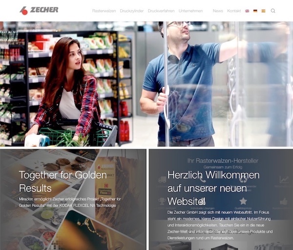 The clear structure of the new website is part of Zecher’s international growth orientation. Reinking comments: “We are very pleased that we are not only presenting Zecher products to users on the new website, but also picking up on the everyday points of contact with end products of the printing industry through the supermarket theme. The new, modern website much better reflects who we are and what Zecher stands for: continuous improvement and customer proximity. That’s one of the reasons Zecher is considered a pioneer in anilox rollers.”