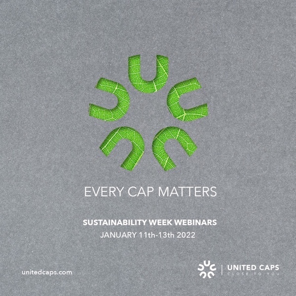 Tuesday 11. January 2022 - Online sessions designed to communicate new options for brands to reduce carbon footprint, take advantage of UNITED CAPS expertise. The manufacturer of caps and closures, today announced a brand-new series of online webinars, Sustainability Week: Every Cap Matters.