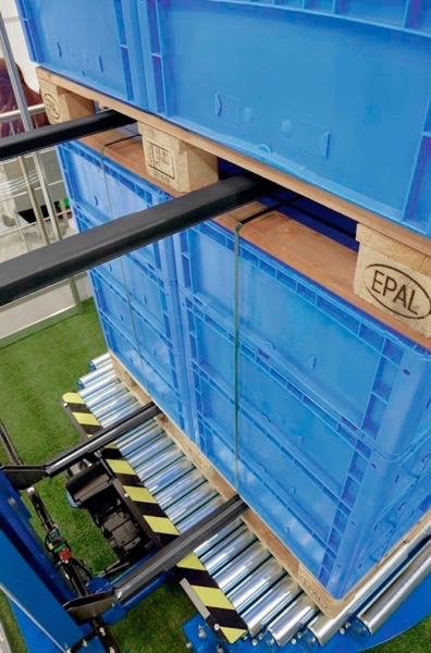 A setup consisting of a MOSCA KZV-321 strapping machine, an automated guided vehicle (AGV) system supplied by GEBHARDT Intralogistics, a pallet doubler and the Saturn S-6 stretch wrapper from MOSCA’s Movitec brand secures pallets for transport or storage. Depending on the requirements, the pallet to be secured passes flexibly through the four stations. Manual processes, such as the doubling of pallets, are no longer necessary.