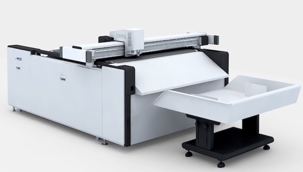 Tuesday 27. September 2022 - The Titanium 0912 has a maximum cutting area of 900 x 1200 mm and features automatic loading and unloading of material. The four station tooling includes an electronic oscillating tool, drag knife, kiss cut knife and creasing wheel.
