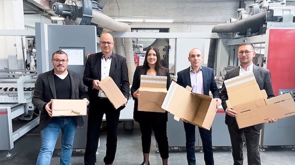 BOURQUIN SA, based in Couvet, Switzerland, is a successful supplier of packaging solutions across the e-commerce, pharmaceutical and chemical, medtech, wine, brewing, industrial, watchmaking and graphic sectors. The company already produces reusable boxes for the e-commerce market in two passes, on its MASTERFOLD 230 folder-gluer in line with the SPEEDPACK, and its ALPINA folder-gluer. A first pass to apply the opening strips and self-adhesive tapes, and a second pass to do the folding and gluing operations on the box.