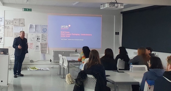 Alongside this brief, designers at Antalis Smart Packaging Centre are currently working on a real-life customer project to produce premium packaging for luxury chocolates. The sharing of such knowledge and ideas has enabled valuable insight for the students as part of the interim critiques, where Steve Chappell, Graphical Board Development Manager at Antalis, was on-hand to see how the students designs were progressing and to offer guidance and support.