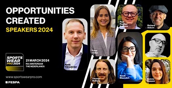 A ticket for the Sportswear Pro conference area, priced at €295, gives unlimited access to both the conference and Sportswear Pro exhibition area, as well as the co-located FESPA Global Print Expo, European Sign Expo and Personalisation Experience 2024 exhibitions. Visitors who register before 19 February can save €30 when using code SWPA427.