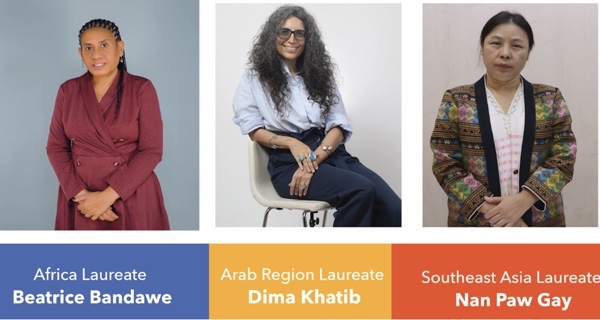 Beatrice Bandawe, Managing Editor, The Guardian Limited, Tanzania; Dima Khatib, Managing Director, AJ+, Palestine/Syria; and Nan Paw Gay, Director and Editor-in-Chief, Karen Information Center, Myanmar have been named 2024 Laureates for Africa, the Arab Region and Southeast Asia, respectively.