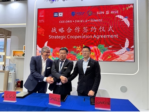 Since the beginning of this year, the CGS ORIS PressMatcher color management system has been installed in five SHIELD end users. So, during Drupa 2024, SHIELD Technology, SUNRISE Technology, and CGS ORIS held the on-site signing ceremony to formally establish a long-term partnership, the goal is to provide global users with leading overall digital inkjet printing solutions. SUNRISE and CGS ORIS will provide first-class color management solutions and technical support services for SHIELD’s POD digital inkjet equipment to meet the needs of color consistency on different presses and help SHIELD inkjet equipment from China to worldwide.