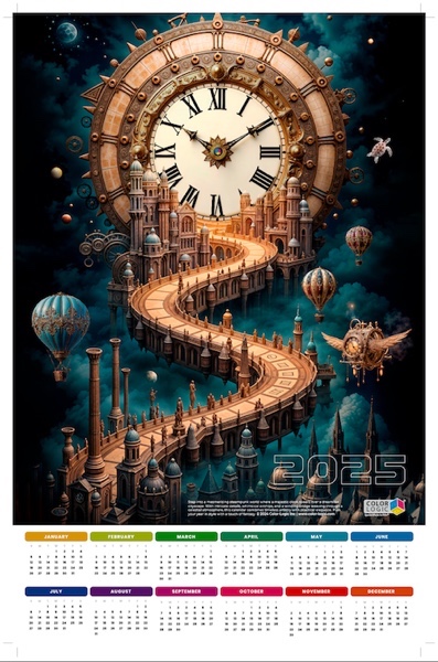 Thursday 19. December 2024 - Color-Logic, the world leader in metallic print embellishment, has announced its 2025 Calendar, now available at no charge for everyone to print. Designed to be printed with white ink or toner on metallic stock using digital presses or printers.