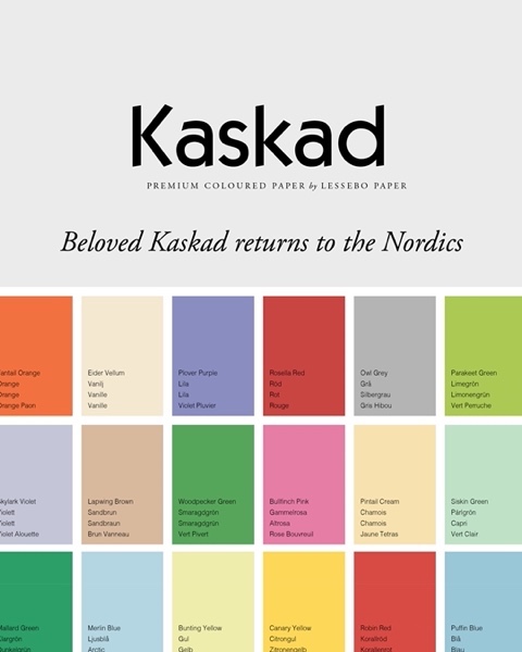 Kaskad is produced at Lessebo Paper has been available in the Nordic market a few years ago. The range of coloured paper is tailored for retail cut-size businesses, offering a consumer packaged product. Despite its pause in the Nordic market, Kaskad has remained popular internationally, including in the UK and Australia. Now, it is making its comeback in the Nordics.