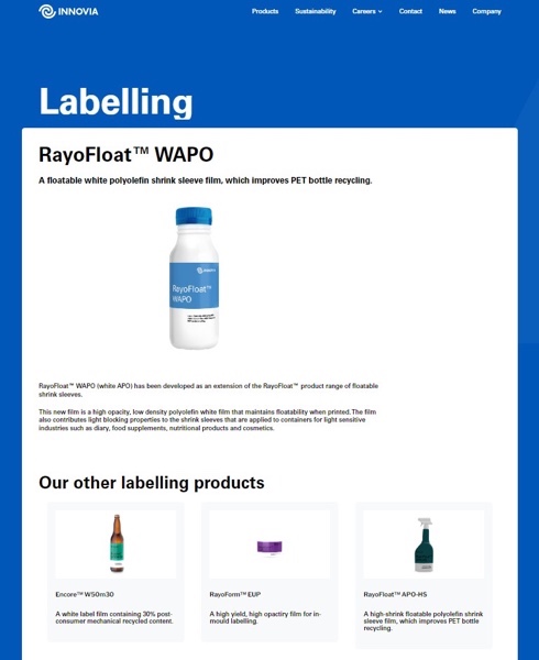 In the products section, selected hero products are highlighted to show the ideal application of Innovia’s highly engineered films.