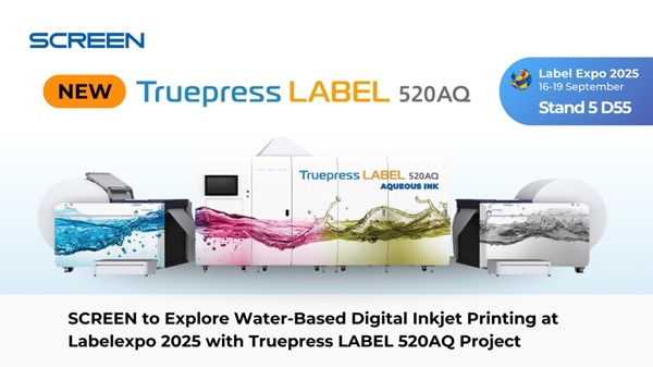SCREEN to Explore Water-Based Digital Inkjet Printing at Labelexpo 2025 with Truepress LABEL 520AQ Project