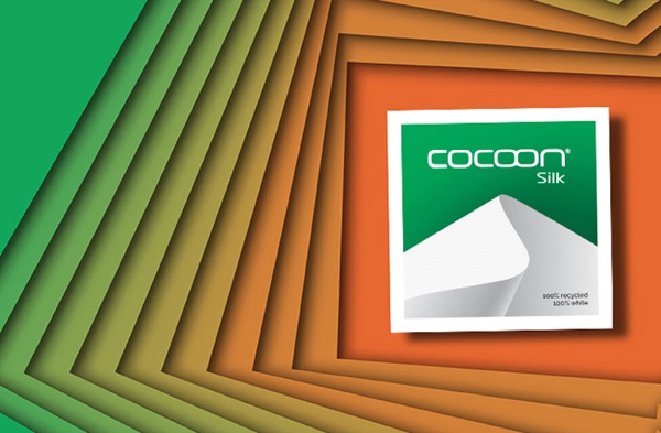 Made from 100% post-consumer recycled pulp, new Cocoon Silk is an environmentally responsible coated paper with satin finish and superb printability